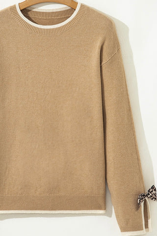 ✔ Tan knit with leopard bow cuffs – adds a touch of fierce femininity