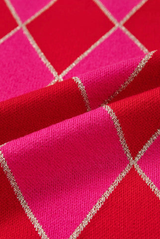 A bold rose-red knit with subtle shimmer that looks amazing with denim or faux leather for date nights, girls’ nights, or festive Valentine’s plans!