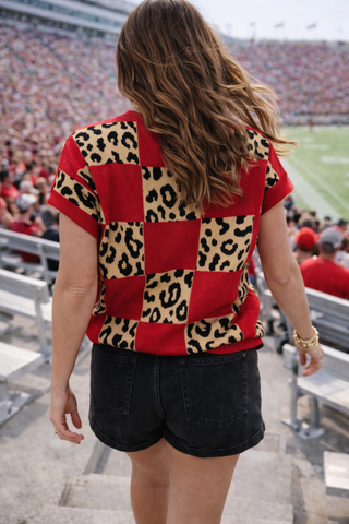 A bold red and leopard checkerboard moment that instantly elevates your denim and turns every sidewalk into a runway!