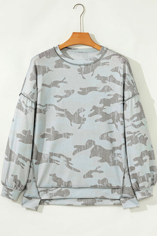 Cozy comfort meets casual charm in this camo-inspired sweatshirt. With its relaxed drop-shoulder fit, exposed seam details, and soft knit blend, it’s the perfect piece for laid-back days or cool-weather adventures. Made to order; ready in approx 2 weeks.