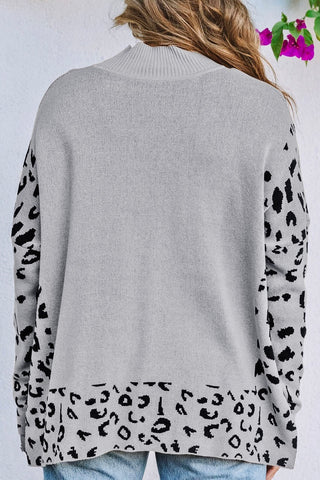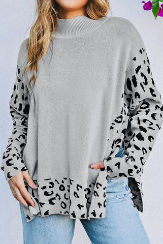 Cool-weather cozy meets playful detail in this stunning color-block style! The Lennox Sweater features a soft gray knit body with bold leopard print accents on the sleeves and hem — giving it that effortlessly chic vibe we’re obsessed with. The high neck, side slits, and oversized fit make it the ultimate throw-on-and-go piece for all your fall adventures. Made to order: ready in approx 2 weeks.
