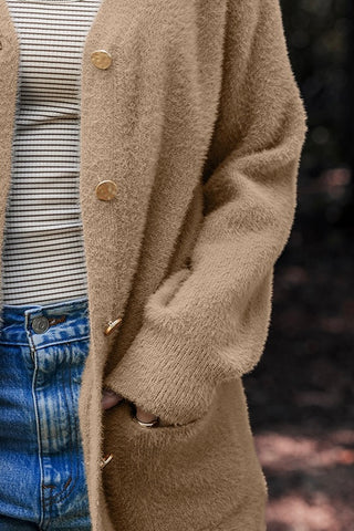 Wrap yourself in soft, snuggly perfection with The Cozy Cabin Cardigan! This dreamy caramel-toned knit has that fuzzy, brushed texture everyone loves, plus a relaxed midi length and button-front design for the perfect laid-back layer. Throw it on over jeans, leggings, or a simple tee for that effortless “weekend at the cabin” vibe you’ll reach for again and again. Several in stock & go to 1st pay; all others are made to order: ready in approx 2 weeks.