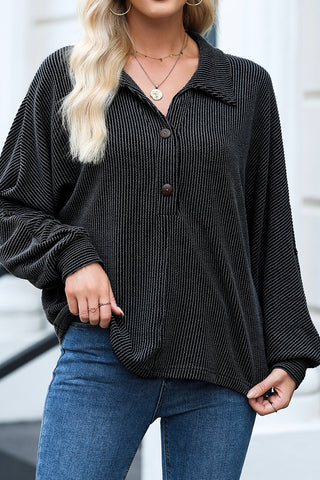 ✔ Button henley collar – a classic neckline with casual-chic appeal