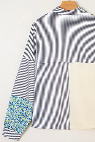 ✔ Colorblock mix of floral & striped prints – a charming blend of pattern and texture