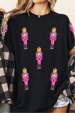 ✔ Sequin Nutcracker Print – Sparkly pink nutcrackers scattered front-to-back for major holiday cheer